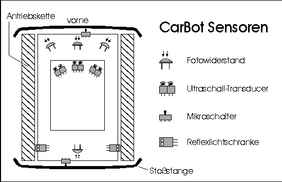 Eine Skizze der CarBot-Sensoren