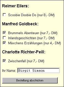 Angenommen, Sie stellen folgendes Bestellformular im WWW zur Verfügung: