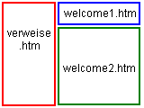 Frame-Set definiert wird, und eine Datei mit Verweisen, bei deren Anklicken sich zwei andere Frames gleichzeitig ändern.Datei rahmen.htm